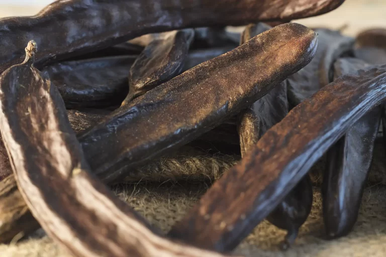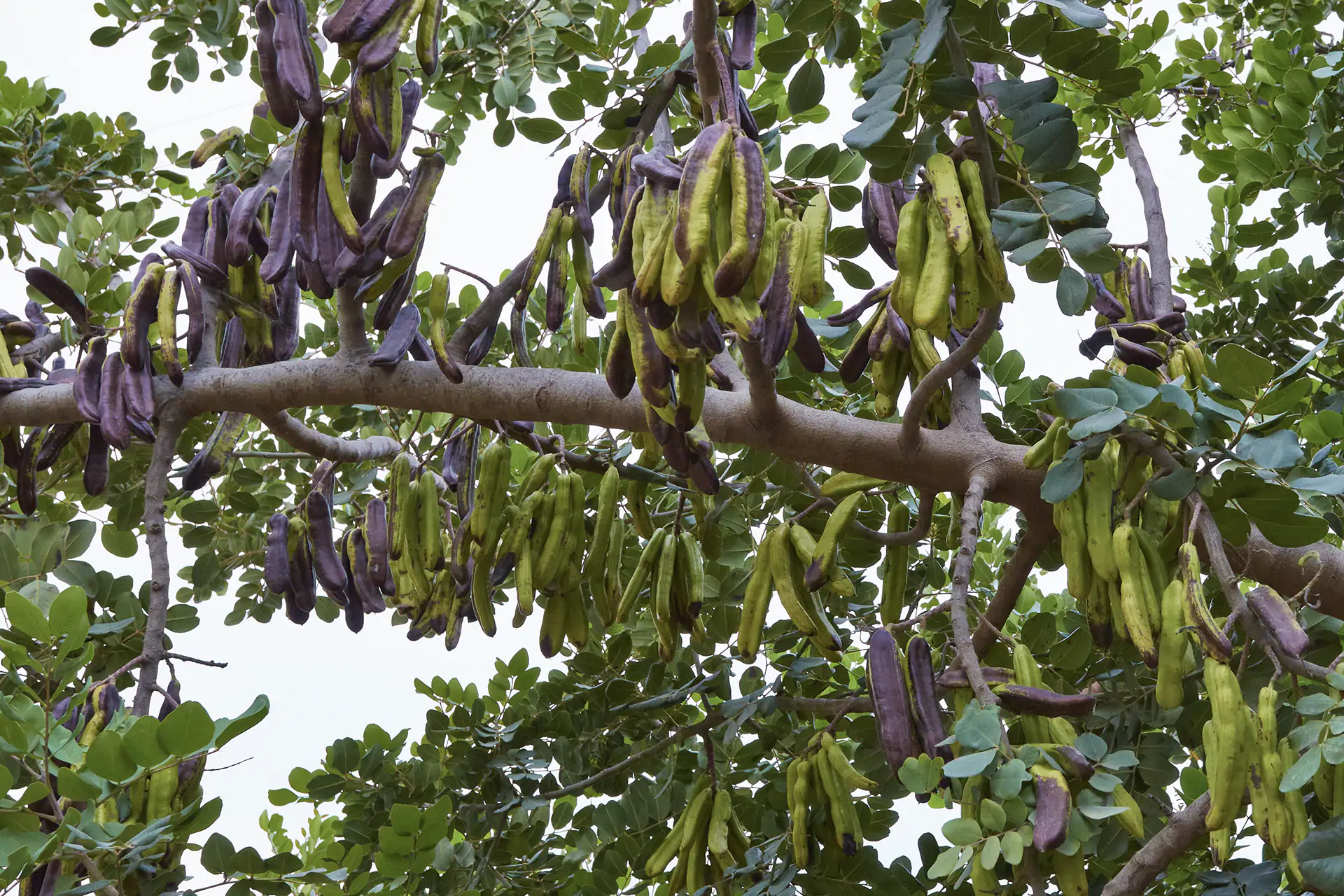 L'albero produce frutti (le carrube) simili al baccello del fagiolo, ma di dimensioni maggiori.